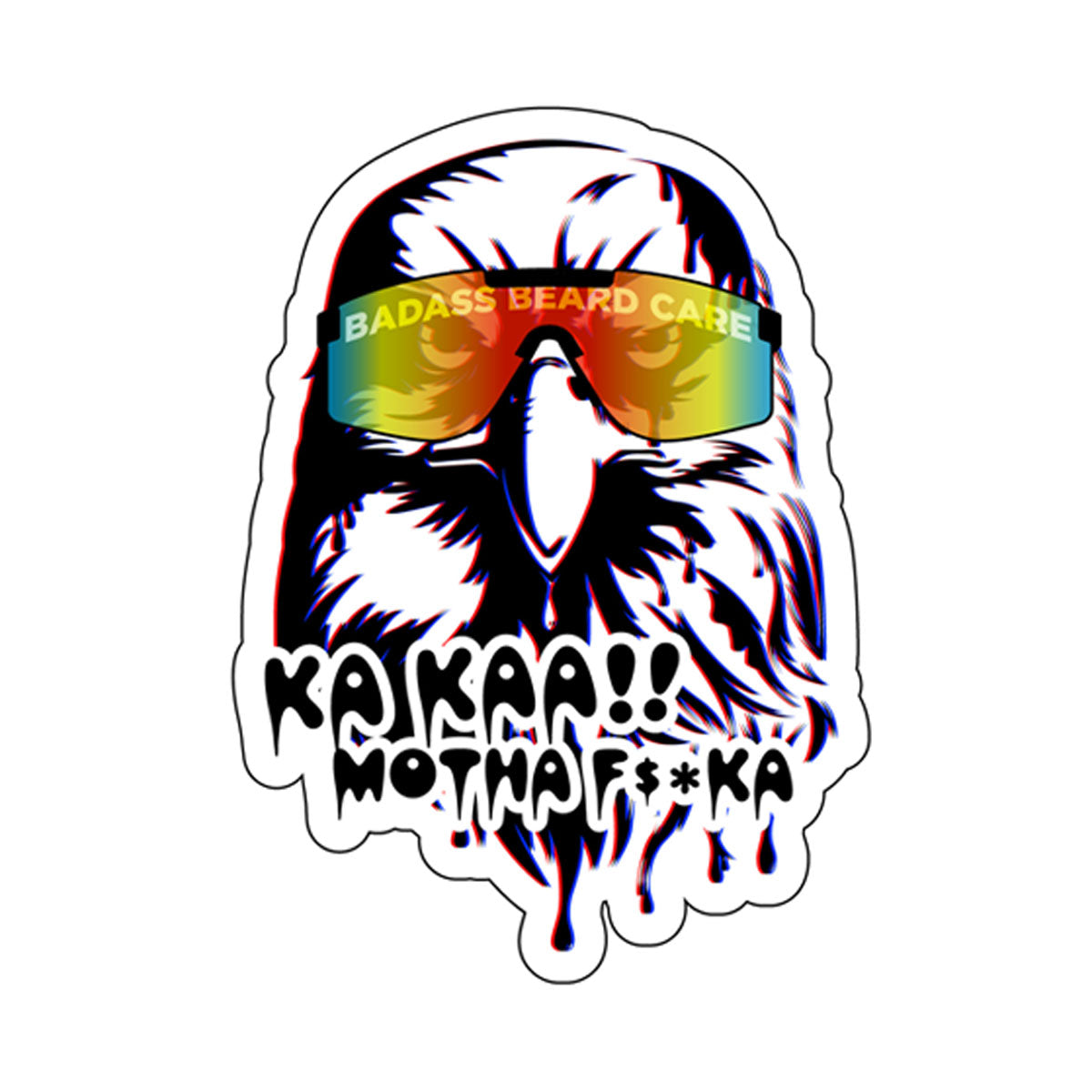 These colors don't bleed!! Show your patriotic support for Badass Beard Care with our "Ka KAA!! MOTHA F$*KA" Sticker featuring a holographic finish.