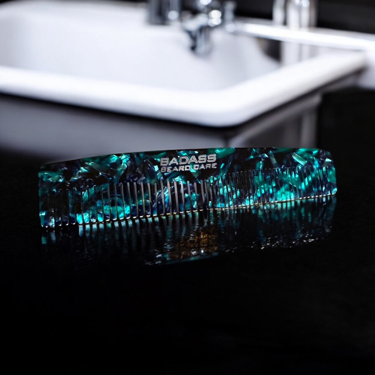 After using a Badass Beard Brush to evenly distribute product and exfoliate your skin, grab your favorite Badass Beard Comb.