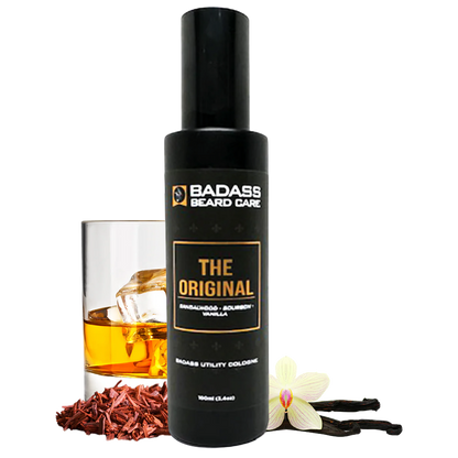 Badass Utility Cologne is a multi-functional body spray designed to help you stay fresh, from your top beard, down to your bottom beard.