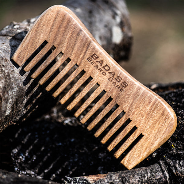 - After using a Badass Beard Brush to evenly distribute product and exfoliate your skin, grab your favorite Badass Beard Comb.
