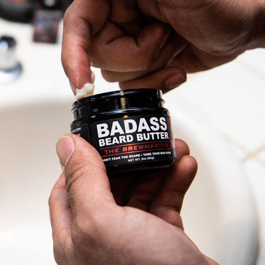 Badass Beard Butter is an all-natural beard conditioner. It is formulated with premium, all-natural ingredients that hydrate and condition your facial hair. The creamy, soft beard butter is easy to remove from the jar and melts instantly in your palms.