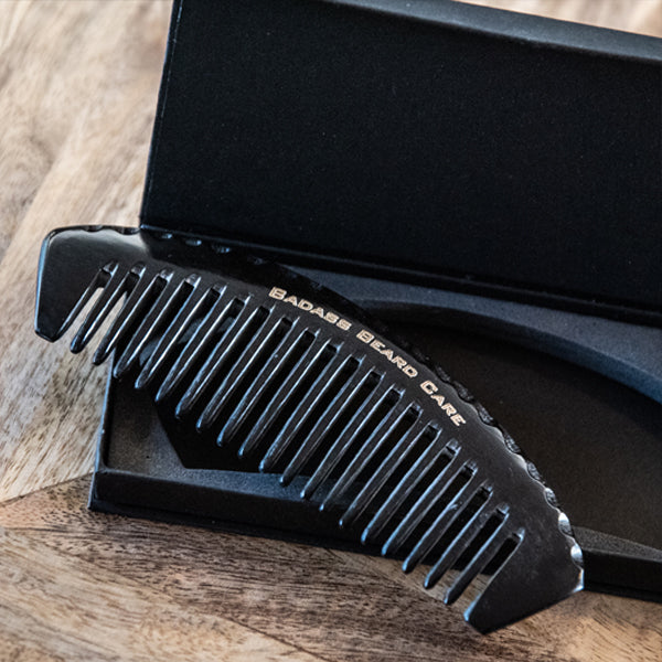 - After using a Badass Beard Brush to evenly distribute product and exfoliate your skin, grab your favorite Badass Beard Comb.