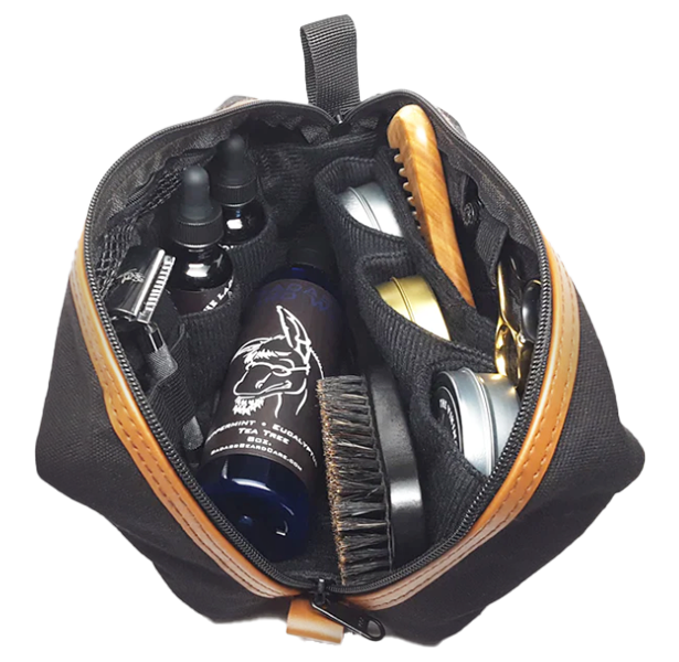 Whether you're always on the road for work and need a durable, feature-loaded Dopp kit or just need some organization and protection of your products, this Canvas Travel Bag with Leather Accents has got you covered. We’ve spent the hours and invested the R&D to meticulously perfect this bag to carry all of your Badass goodness - from padded pockets sized perfectly to fit and protect your oils, balms, scissors and combs, to elastic straps and zippered compartments to organize other toiletry essentials while traveling. And with room to spare in the main compartment for your 8oz Beard Wash bottle, Badass brushes, and deodorant and a lifetime warranty to boot, you won't ever need another toiletry bag again! So pick up one of these Badass Canvas Travel Bags today, and enjoy that extra feeling of awesomeness knowing this bag will be Badass forever.